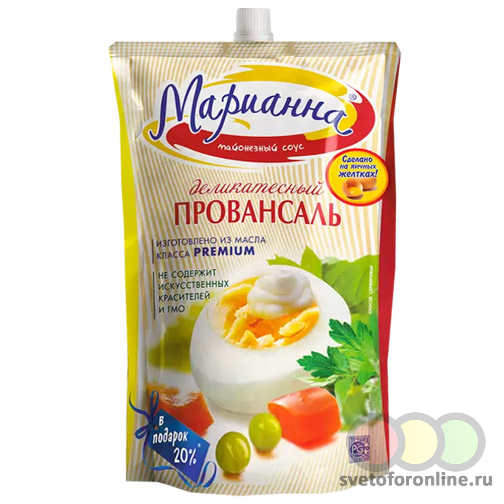 Майонезный соус Марианна Провансаль столовый ДЕЛИКАТЕСНЫЙ 750 мл 735 гр 20% дой пак НПК НПК ООО (Ног - Купить в магазине "Светофор" город Меленки, улица Гагарина, дом 1В