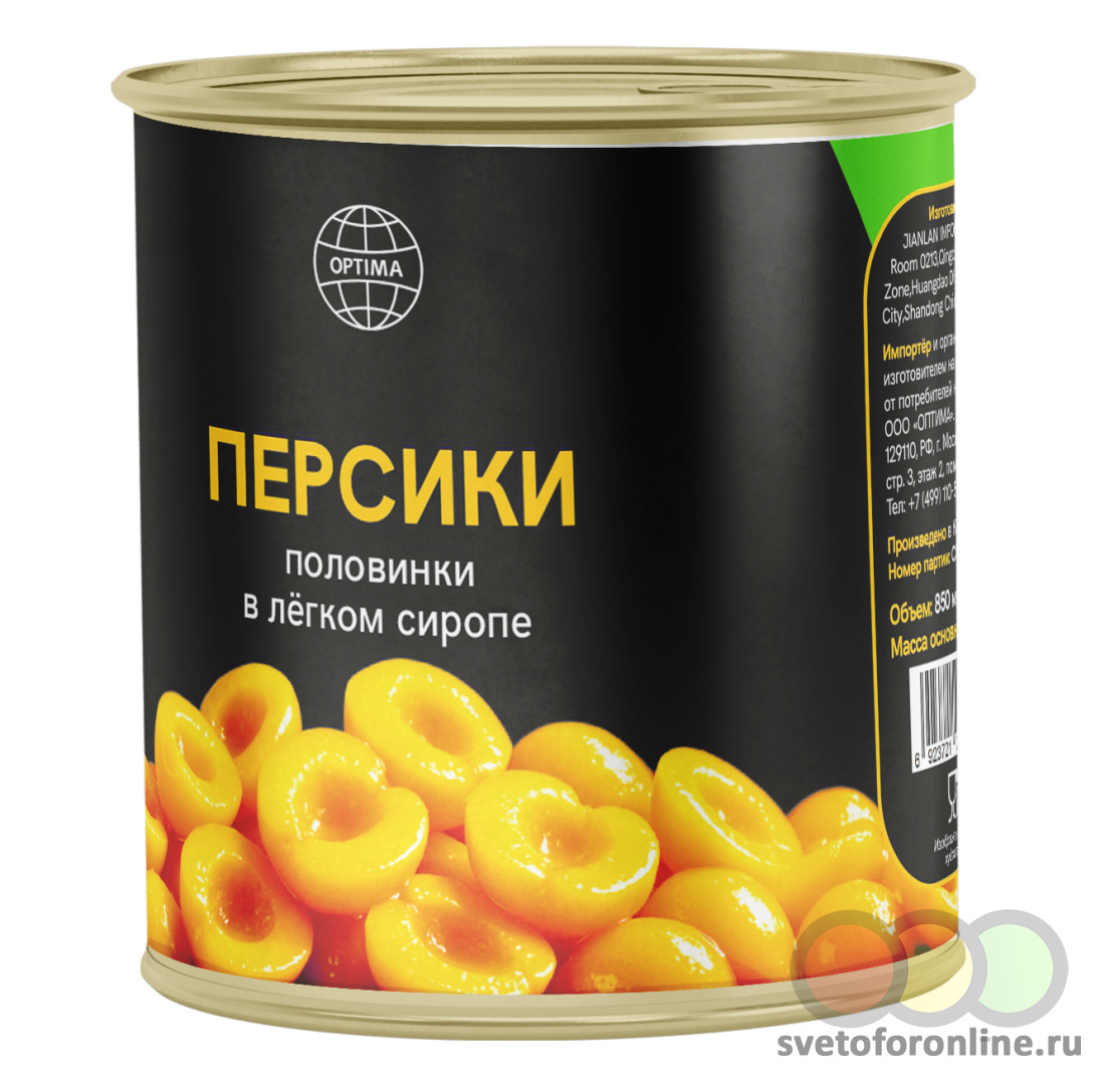 Персики половинки в легком сиропе 850 гр. ОПТИМА ООО (Москва) (производитель) - Купить в магазине "Светофор" город Меленки, улица Гагарина, дом 1В